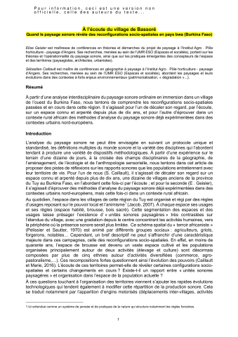 À l'écoute du village de Bassoré. Quand le paysage sonore révèle des reconfigurations socio-spatiales en pays bwa (Burkina Faso)