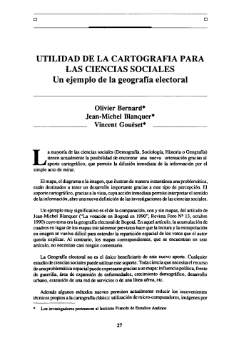 Olivier Bernard, Jean-Michel Blanquer, Vincent Gouëset. Utilidad de la cartografía para las ciencias sociales. Cuadernos de Geografía, Revista Colombiana de Geografía, 1991, 3 (1), pp.27-52. ⟨hal-04730429⟩