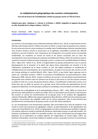 Nicolas Raimbault. Le redéploiement géographique des ouvriers contemporains. Anne Clerval; Camille Gardesse; Jean Rivière. Inégalités et rapports de pouvoir en ville. Actualité de la critique urbaine, L'ŒIL D'OR, 2023, 978-2-490437-26-9. ⟨hal-04756574⟩
