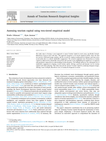 Wadie Othmani, Rym Ammar. Assessing tourism capital using two-tiered empirical model. Annals of Tourism Research Empirical Insights, 2024, 5 (2), pp.100131. ⟨10.1016/j.annale.2024.100131⟩. ⟨hal-04808328⟩