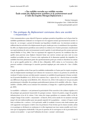 Des mobilités normales aux mobilités normées. Étude croisée des déplacements quotidiens et du positionnement social à l'aide des Enquêtes Ménages-Déplacements