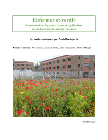 Alix Barbier, Alexandre Berthe, Anaïs Henneguelle, Antonin Margier. Enfermer et verdir. Représentations, logiques d’action et significations du verdissement des prisons françaises. 2025. ⟨hal-05379718⟩