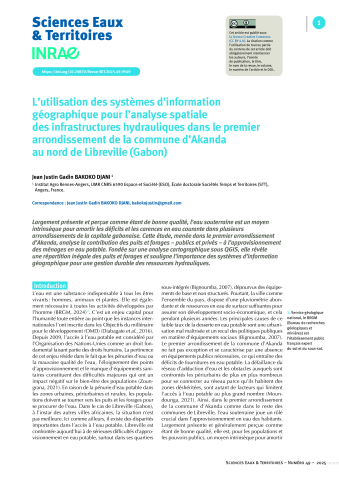 Jean Justin Gadin Bakoko Djani. L’utilisation des systèmes d'information géographique pour l’analyse spatiale des infrastructures hydrauliques dans le premier arrondissement de la commune d’Akanda au Nord de Libreville (Gabon). Sciences Eaux & Territoires, 2025, 49, pp.9549. ⟨10.20870/Revue-SET.2025.49.9549⟩. ⟨hal-05385321⟩