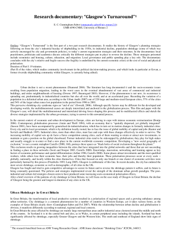 Emmanuèle Cunningham-Sabot. Research documentary: "Glasgow's Turnaround". Grand Ouest days of Territorial Intelligence IT-GO, "Territorial Intelligence and socio-ecological foresight", Nantes - Rennes 2010, Mar 2010, Nantes-Rennes, France. 7p. ⟨halshs-00781626⟩