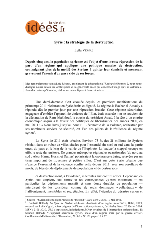 2016 Syrie : la stratégie de la destruction Leïla Vignal | Rennes Accès Index Accèder au document Syrie conflit Fichier