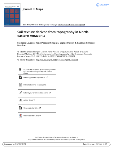 François Laurent, René Poccard-Chapuis, Sophie Plassin, Gustavo Pimentel Martinez. Soil texture derived from topography in North-eastern Amazonia. Journal of Maps, Taylor & Francis, 2016, 13 (2), pp.109-115. ⟨10.1080/17445647.2016.1266524⟩. ⟨halshs-01416905⟩