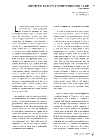 Franck Dorso. Quand l'intime fuit le privé pour trouver refuge dans le public. Travaux & documents, Université de La Réunion, Faculté des lettres et des sciences humaines, 2007, pp.57-64. ⟨halshs-00179100⟩