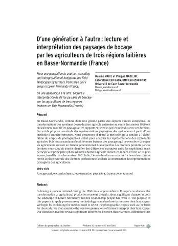 D'une génération à l'autre : lecture et interprétation des paysages de bocage par les agriculteurs de trois régions laitières en Basse-Normandie (France)
