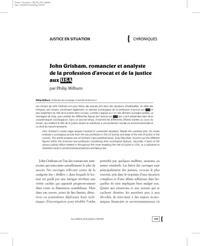 Philip Milburn. John Grisham, romancier et analyste de la profession d’avocat et de la justice aux USA.. Les Cahiers de la justice, Dalloz, 2016. ⟨hal-01767571⟩
