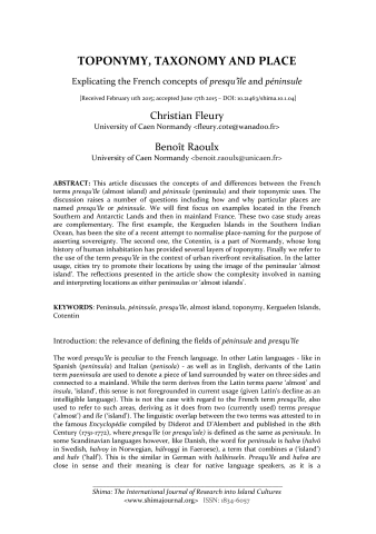 TOPONYMY, TAXONOMY AND PLACE Explicating the French concepts of presqu'île and péninsule