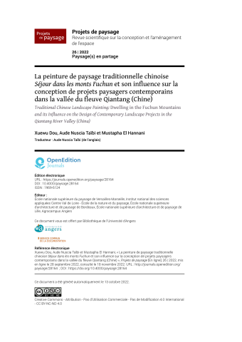 La peinture de paysage traditionnelle chinoise Séjour dans les monts Fuchun et son influence sur la conception de projets paysagers contemporains dans la vallée du fleuve Qiantang (Chine)