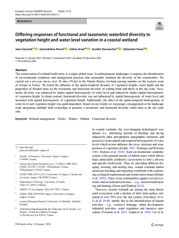 Differing responses of functional and taxonomic waterbird diversity to vegetation height and water level variation in a coastal wetland